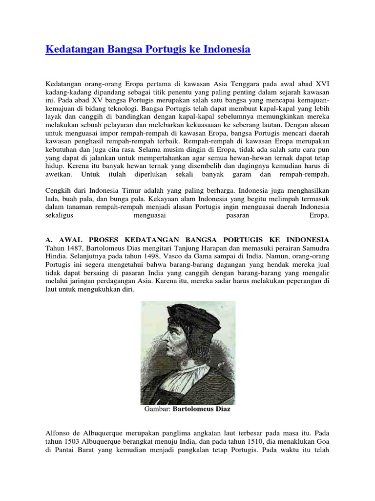 Related : Kedatangan Portugis Ke Melaka : Bartolomeos diaz merupakan orang portugis pertama yang mencoba mencari jalan baru ke ia meninggalkan portugal pada tahun 1486 dan mulai melakukan perjalanan menuju indonesia..
