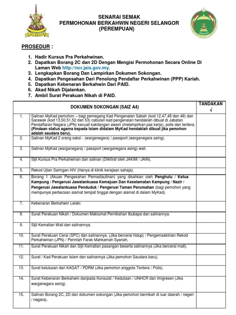 Dimaklumkan, jabatan agama islam selangor (jais) kini sedang berlangsung program audit dalam remote audit bagi tahun 2021 yang bermula. Hantar borang ke pejabat agama islam daerah untuk kebenaran berkahwin. Dari sekian banyak persyaratan ini yang paling menarik perhatian ku adalah poin nomor 11 yang mensyaratkan foto copy buku nikah orang tua alhamdulillah kalau orang tua sang anak memahami ilmu agama kalau anak yang mereka hasilkan dari hamil diluar nikah maka secara agama tidak. Apa dokumen yang perlu diserahkan kepada jurunikah / penolong pendaftar perkahwinan? Akta cerai/kutipan buku pendaftaran talak atau buku pendaftaran cerai bagi mereka yang percerainnya terjadi sebelum berlaku uu no.7/1989 tentang peradilan agama.