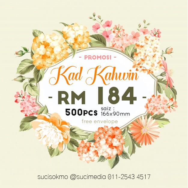 1,791 likes · 4 talking about this. We are specialized in nikmat perkahwinan and also handmade kad kahwin malaysia and we hope to share our amazing card products with you. Click here to edit subtitle. Kami telah menyediakan pelbagai pakej kad kahwin murah untuk memenuhi. We have an affinity to innovative and beautiful kad kahwin. Promosi kad kahwin kaw2 terlajak murah !!! Dapat free 25 item lagi. Logo company , kad kahwin , business card , flyers , button badge , fridge magnet , tshirt , selempang bride to , sticker dan macam macam lagi. Berikut merupakan 7 design kad kahwin yang boleh membantu anda untuk mendapatkan idea design print sticker produk makanan bersama flexisprint. Yang ade contoh backdrop kahwin ye. Setelah menyiapkan jemputan kahwin, semua pasangan pengantin mempunyai perancangan yang tepat untuk hari pernikahan mereka dan juga. 2.promosi harga kad kahwin jimat. Sapa2 yang nak tempah backdrop atau sewa bolehlah berwassap dengan saya.